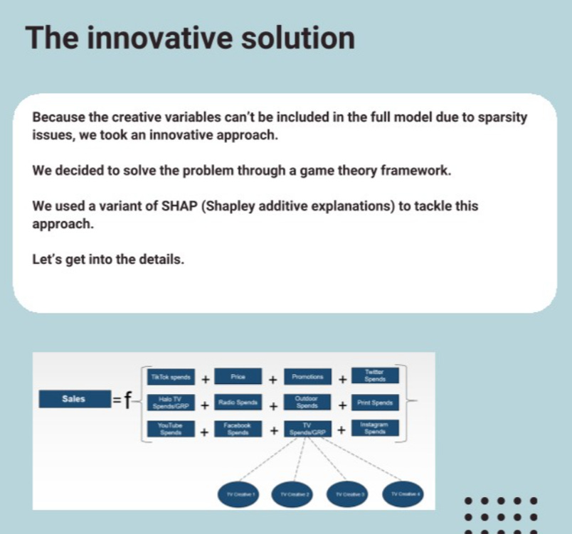 Ridhima Kumar from Aryma Labs recently shared their approach for adding granularity to MMM by using a variation Shapley Additive Explanations (click for details of their approach). This is an alternative so the probably most usual approach of running a multivariate regression with detailed marketing inputs that explains the overall variable that lacks granularity. Of course the best way to solve the granularity problem in MMM is to collect more data (store-level, region-level…) but that is not always possible. Great to see innovative approaches to extract the most information out of a limited dataset.